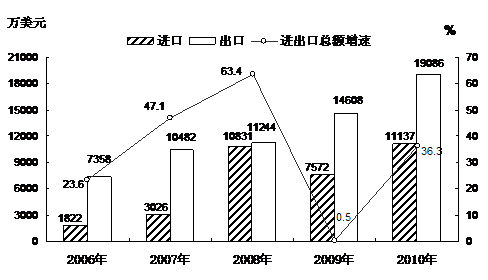 | 表6: 2010年进出口总额及增长速度 |