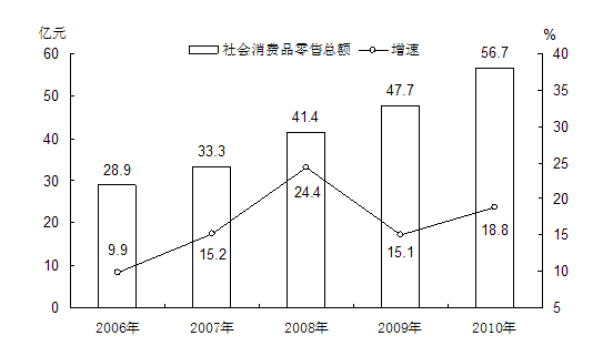 图7:“十一五”时期社会消费品零售总额及增长速度