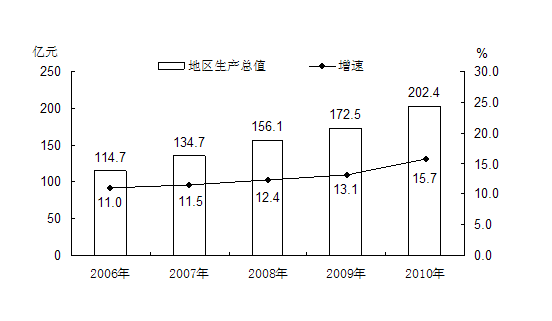 表1: 2010年全市生产总值与增长速度