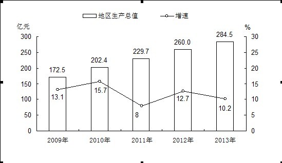 2009-2013年全市地区生产总值及其增长速度