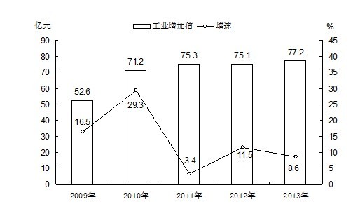 2009-2013年工业增加值及增长速度