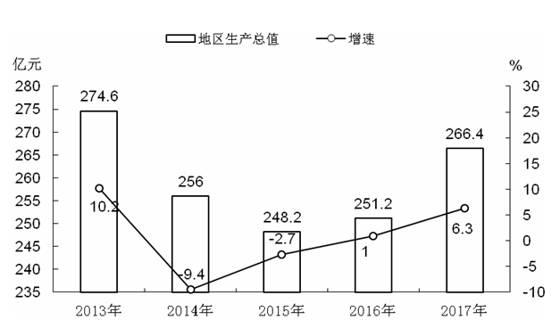 图1 2013-2017年全市地区生产总值及其增长速度