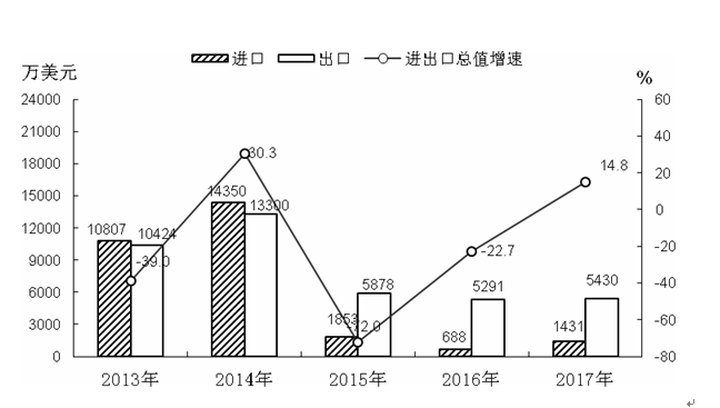 图8 2013-2017年进出口总值及增长速度