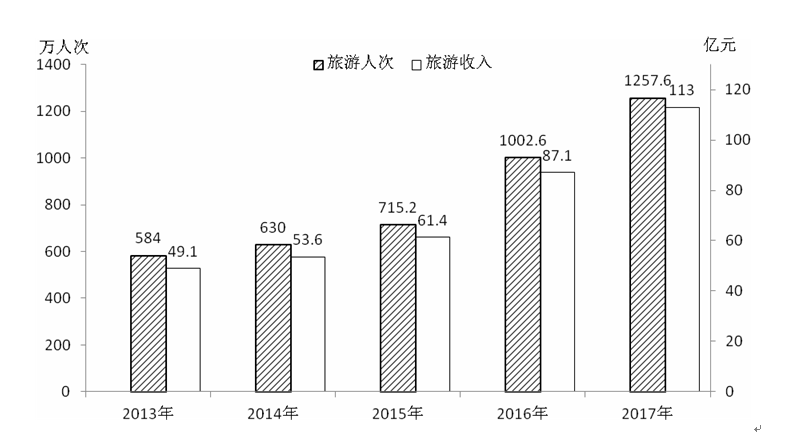 图9 2013-2017年全市旅游人次和收入