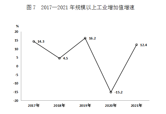 规模以上工业增加值同比增长12.4%。其中:轻工业下降1.8%,重工业增长14.5%;采矿业增长54.6%,制造业增长1.3%,电力、热力、燃气及水生产和供应业下降9.3%;大中型企业增长2.5%;国有控股企业增长34.7%;私营企业下降3.1%;非公有企业增长2.7%;股份制企业增长12.7%。
