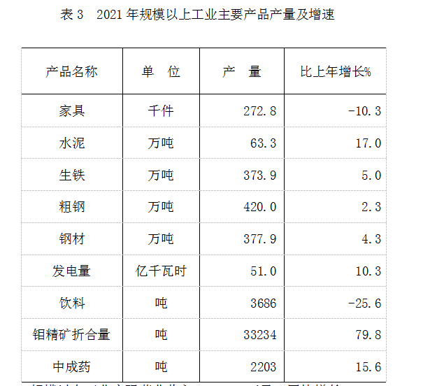 全年规模以上工业中,有色金属矿采选业增长55.1%,黑色金属冶炼和压延加工业增长5.1%,食品制造业增长6.8%,医药制造业增长3.6%,电力、热力生产和供应业下降9.3%。全年六大高耗能行业同比增长1.0%,比上年同期下降1.0个百分点;占规模以上工业比重为57.5%,比上年同期下降6.8个百分点。