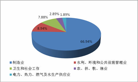 2024年,本市危险废物产生量排名前五的行业依次为制造业、水利、环境和公共设施管理业、卫生和社会工作、农、林、牧、渔业和电力、热力、燃气及水生产供应业, 分别占全市危险废物产生总量的66.94%、8.94%、7.88%、2.89%、1.89%,详细情况见图2。