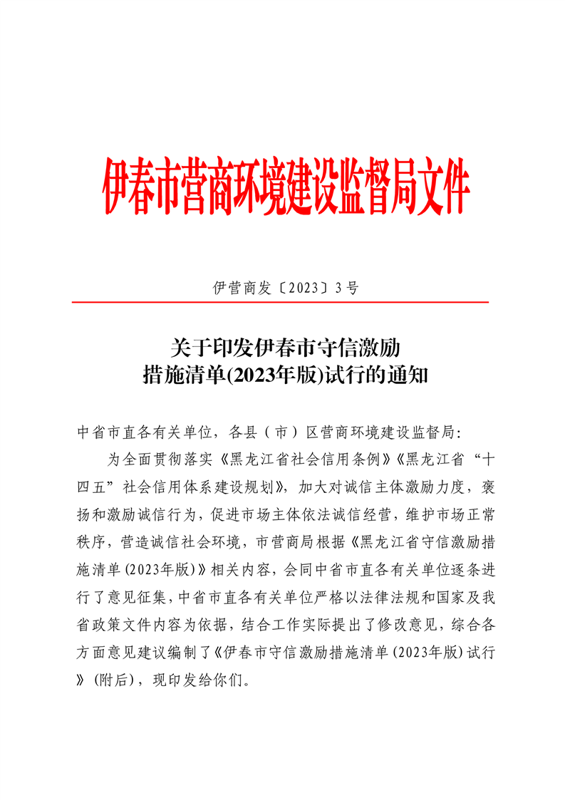 关于印发皇冠手机官网守信激励措施清单(2023年版)试行的通知