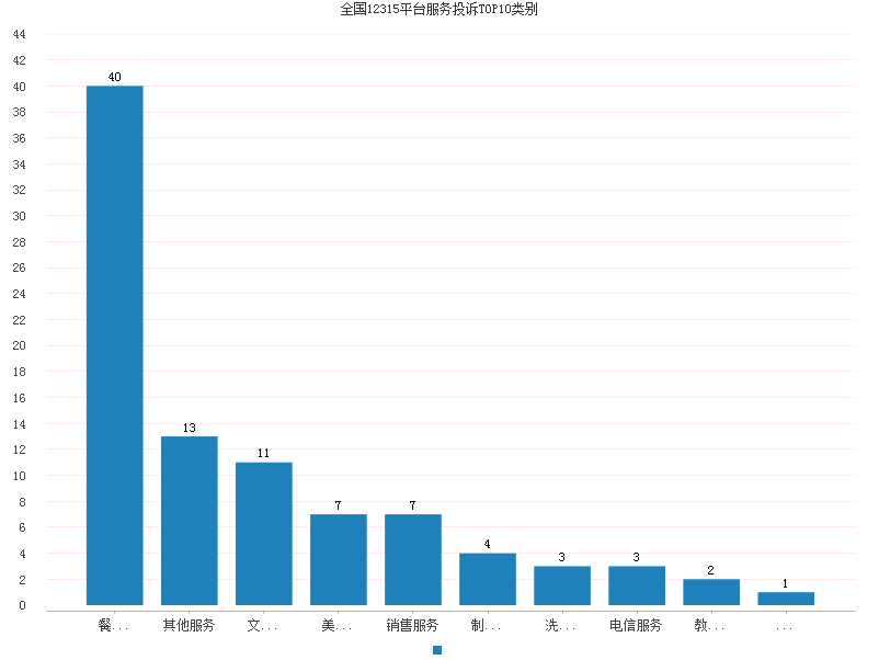 (三)从服务投诉来看,投诉受理量较大的服务主要有:餐饮和住宿服务(40件)、其他服务(13件)、文化、娱乐、体育服务(11件)、美容、美发、洗浴服务(7件)、销售服务(7件)。
