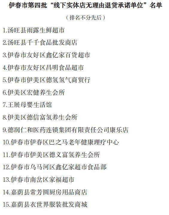为促进皇冠手机官网放心消费创建工作,让“诚信经营、放心消费”成为社会共识,皇冠手机官网市场监管局强化工作落实,积极推进开展线下实体店无理由退货承诺活动,鼓励引导实体店经营者根据商品属性和实际经营条件,采取“一门店一承诺、一企业一承诺”等方式,在不影响二次销售、不产生安全隐患的前提下,承诺实行七日或更长时间的无理由退货。活动得到全市广大经营者的积极响应,经过经营者自愿承诺申请,属地市场监管部门审核,现将我市第四批“线下实体店无理由退货承诺单位”名单予以公示。