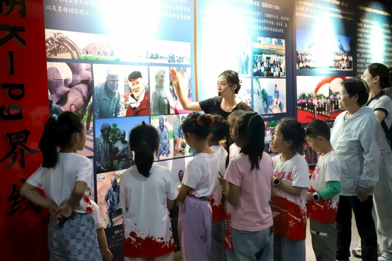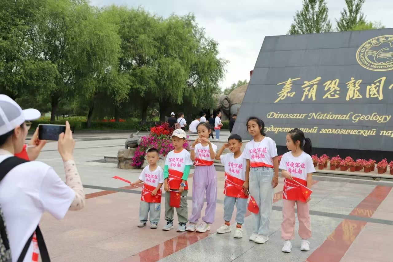 午后的嘉荫恐龙国家地质公园,为这场旅程添了别样色彩。作为“军嫂军娃游林都”优待项目清单中55家优待企业之一,公园为军嫂军娃们提供了1号馆免首道门票的礼遇,讲解员为孩子们开启了一场“远古探秘”。