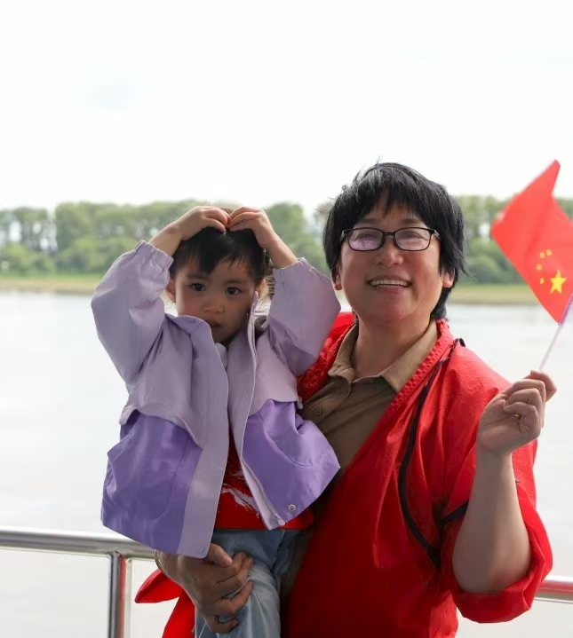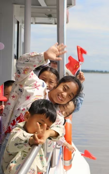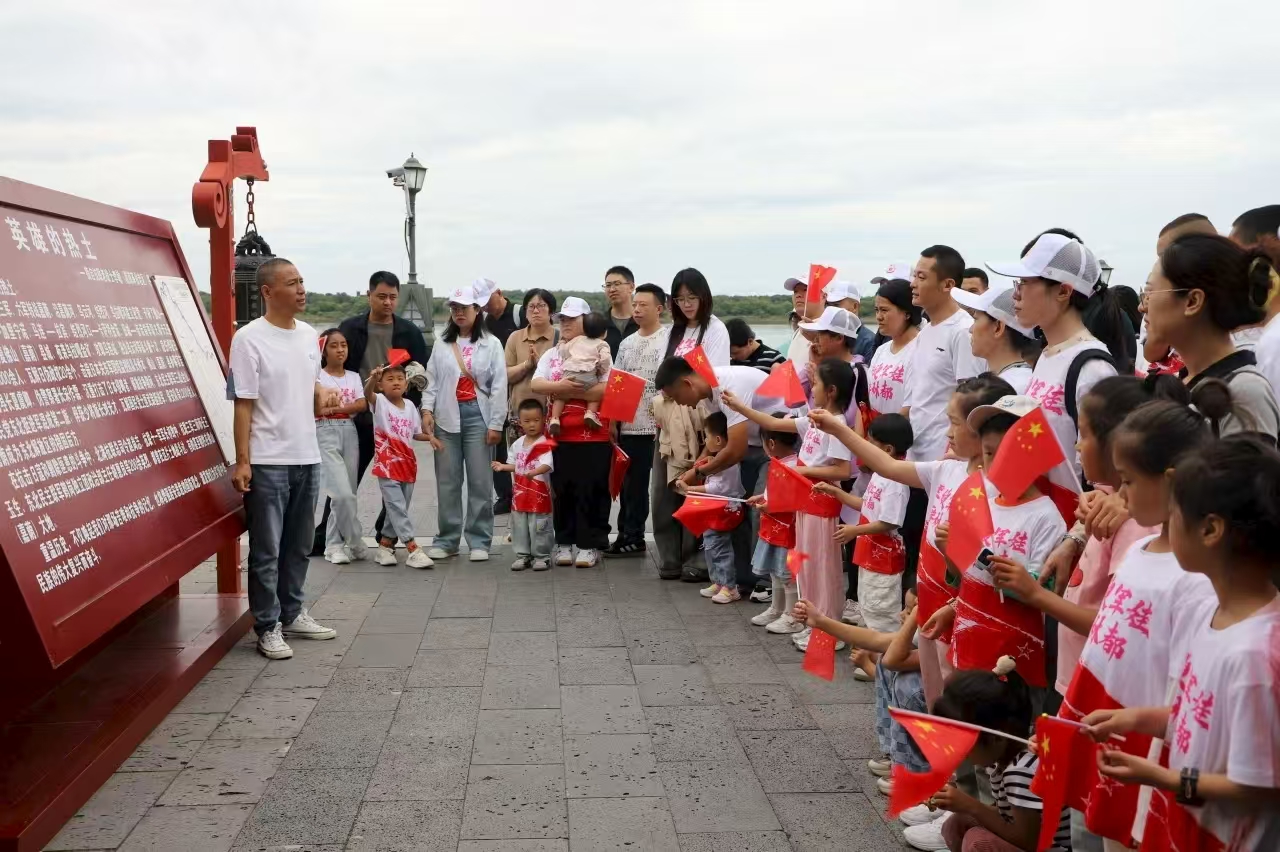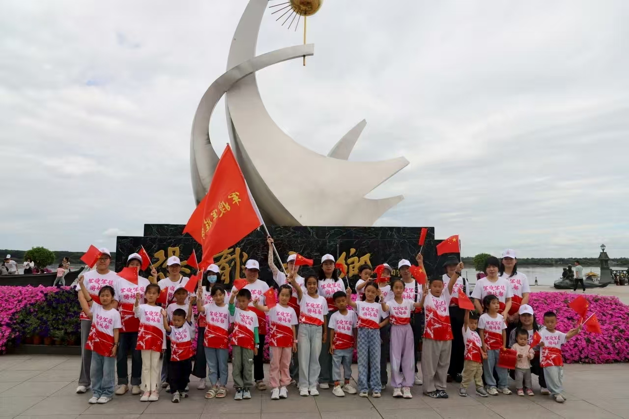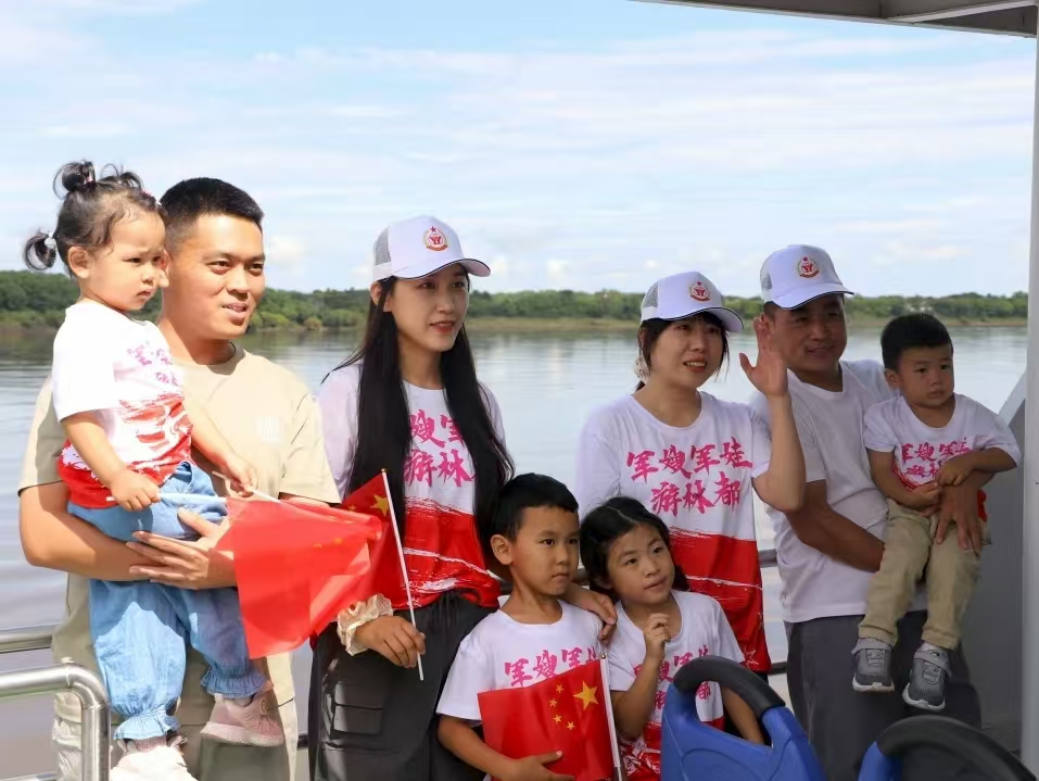抵达嘉荫县时,江风裹挟着阳光拂过江岸。讲解员孙敬光为大家讲述着嘉荫这片红色土地的故事,细数着当年的抗战岁月,也将敬意投向身旁的军嫂军娃——“你们的爱人正延续着这份守护,他们是国家的骄傲,你们亦是。”随后的游江途中,碧波荡漾的江水载着船缓缓前行,对岸风光清晰可见。军嫂们凭栏远眺,目光掠过江面时,心中对爱人日常守护的这片土地多了几分真切感知。