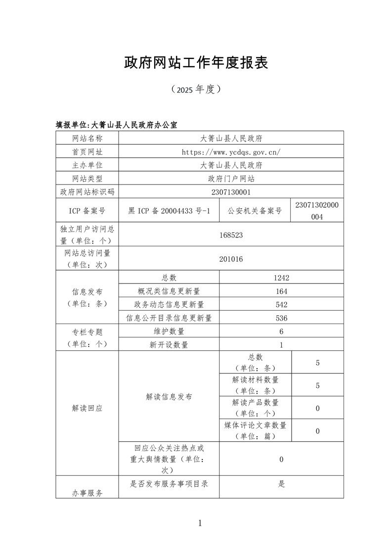 皇冠手机官网大箐山县政府网站工作年度报表(2025年度)