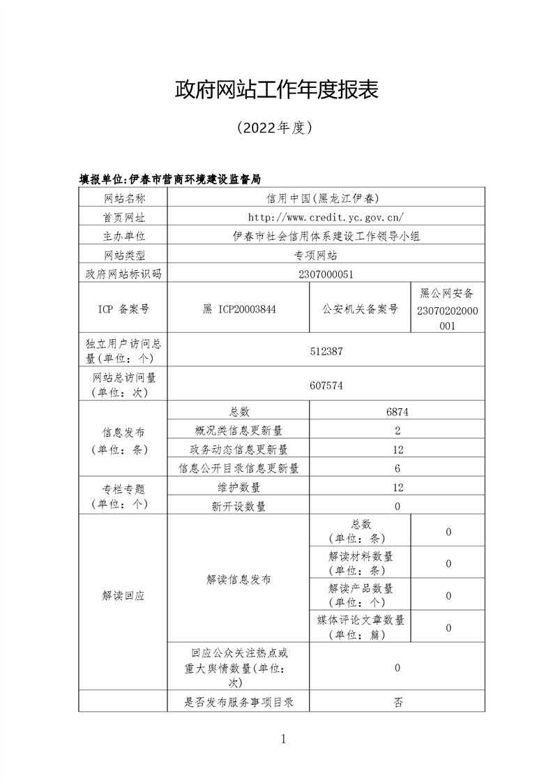 2022年度信用中国(黑龙江皇冠手机官网)网站工作年度报表