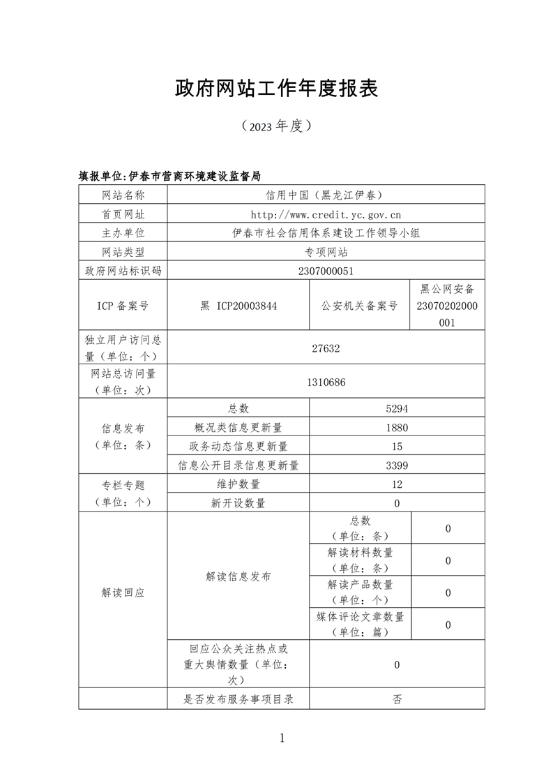 2023年度信用中国(黑龙江皇冠手机官网)网站工作年度报表